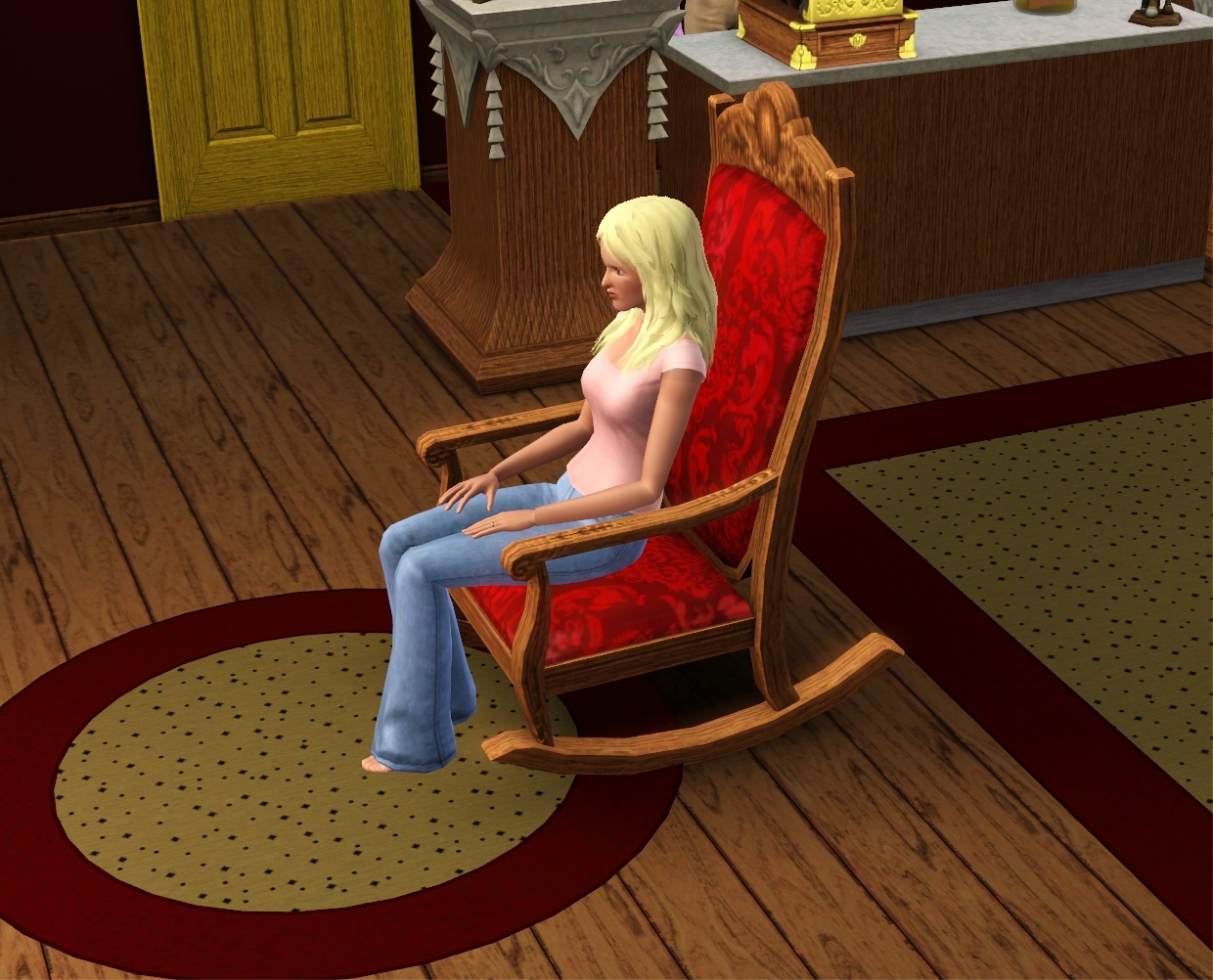 Adult Sims will enjoy the comfortable rocking chair while the little ones can ride rodeo on the rocking horse.
