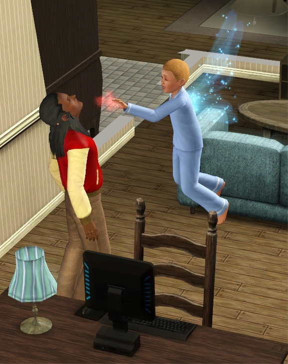 Even children can play tricks on other Sims or show off their flying skills.