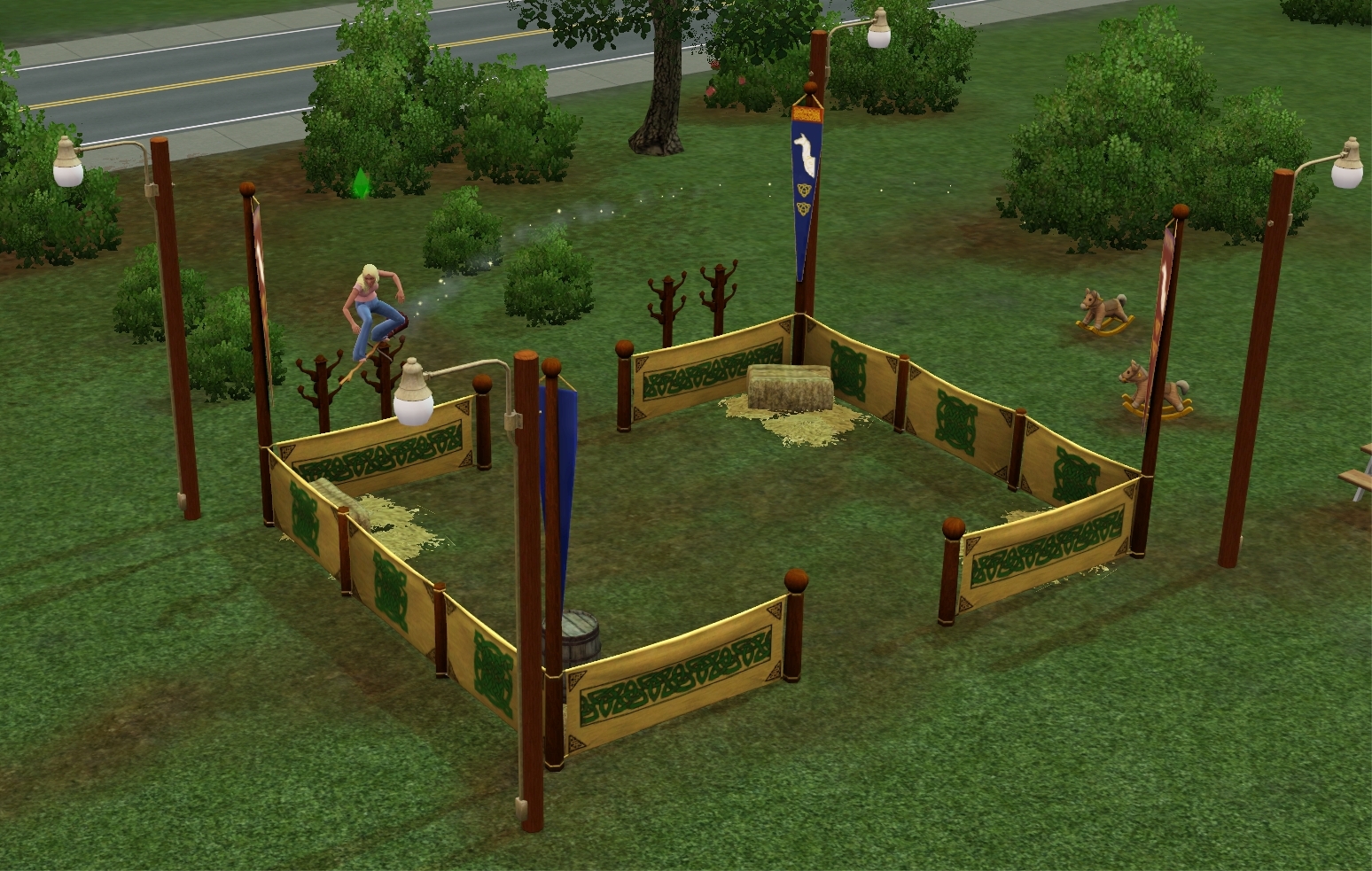 Witches ride on their brooms through town but doing so they are confined to streets and the witch arena. In the witch arena they can do stunts or ride around the arena. They can even do stunts for tips.