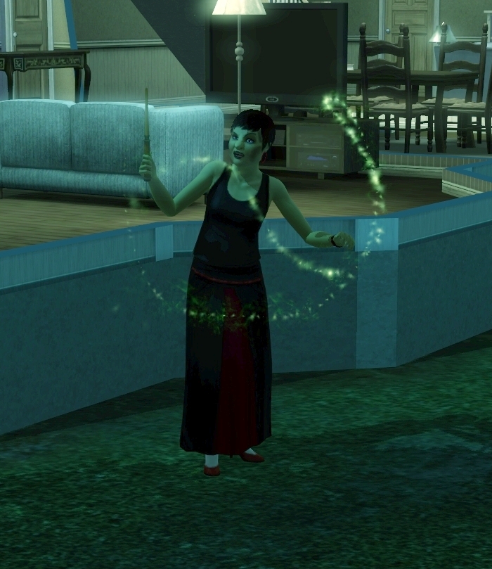 While they get better and better they can transform stuff into different stuff (you can’t choose though what you want) or bewitch other Sims. Next to tons of spells to make other Sims life miserable by ruining their needs they can summon a ghost (an existing one) or turn the sim into a toad.