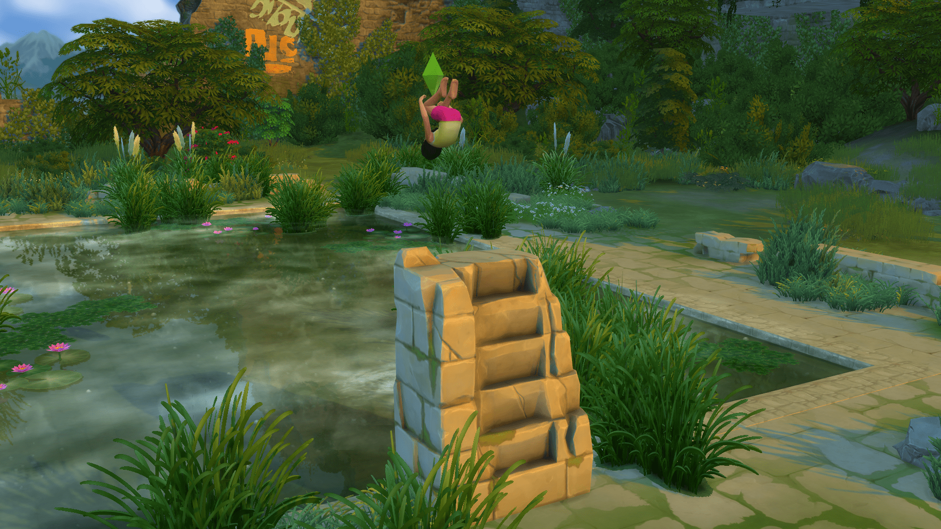 Diese Sprungtürme kommen in 3 Ausführungen, wobei zwei mehr für die natürlichen Pools gedacht sind, da sie mehr Felsen als tatsächliche Sprungtürme sind. Ein Sim kann zwischen 4 verschiedene Sprungarten wählen: Arschbombe, Rückwärtssalto, Springen und Schwalbensprung. Es gibt keine eigentliche Springfähigkeit, das gute Gelingen ist rein zufällig, kann aber schon mal von der aktuellen Emotion beeinflusst werden.